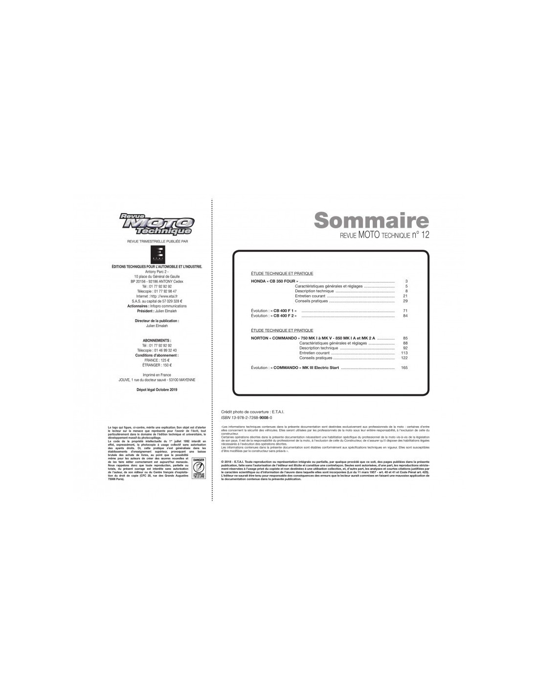 La Revue Moto Technique n°12 met à votre disposition une description détaillée des systèmes mécaniques et électroniques des CB350 et 400 Four. Grâce à des schémas précis, ce document vous guide pour entretenir et réparer votre véhicule en toute sécurité et à moindre coût.